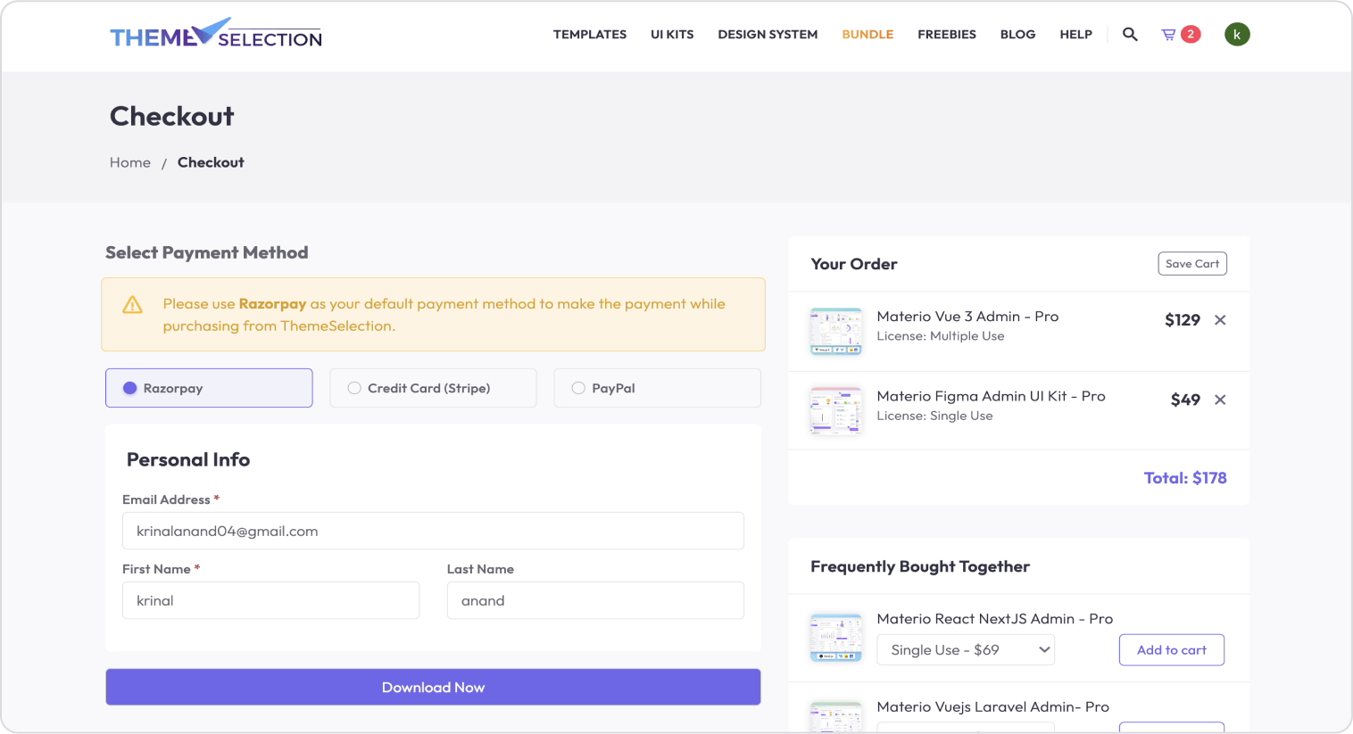 If you're after only one item, simply choose the 'Buy Now' option on the item page. This will take you directly to Checkout.